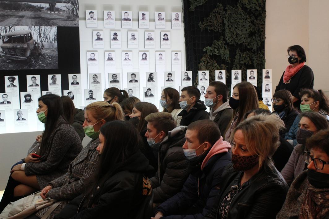 Під час виступу полковник В’ячеслав Печененко – учасник бойових дій на Сході України розповів про свій бойовий шлях у складі першого добровольчого формування особливого призначення в структурі МВС України «Дніпро-1». Згадав про участь у важких боях підрозділів батальйону під Іловайськом, Маріуполем, Мар’їнкою та загиблих побратимів, один з яких – сержант Роман Харченко, увічнений на «Стіні пам’яті» у музеї. Наголосив на важливості національно-патріотичного виховання молоді, висловив впевненість у перемозі над ворогом.