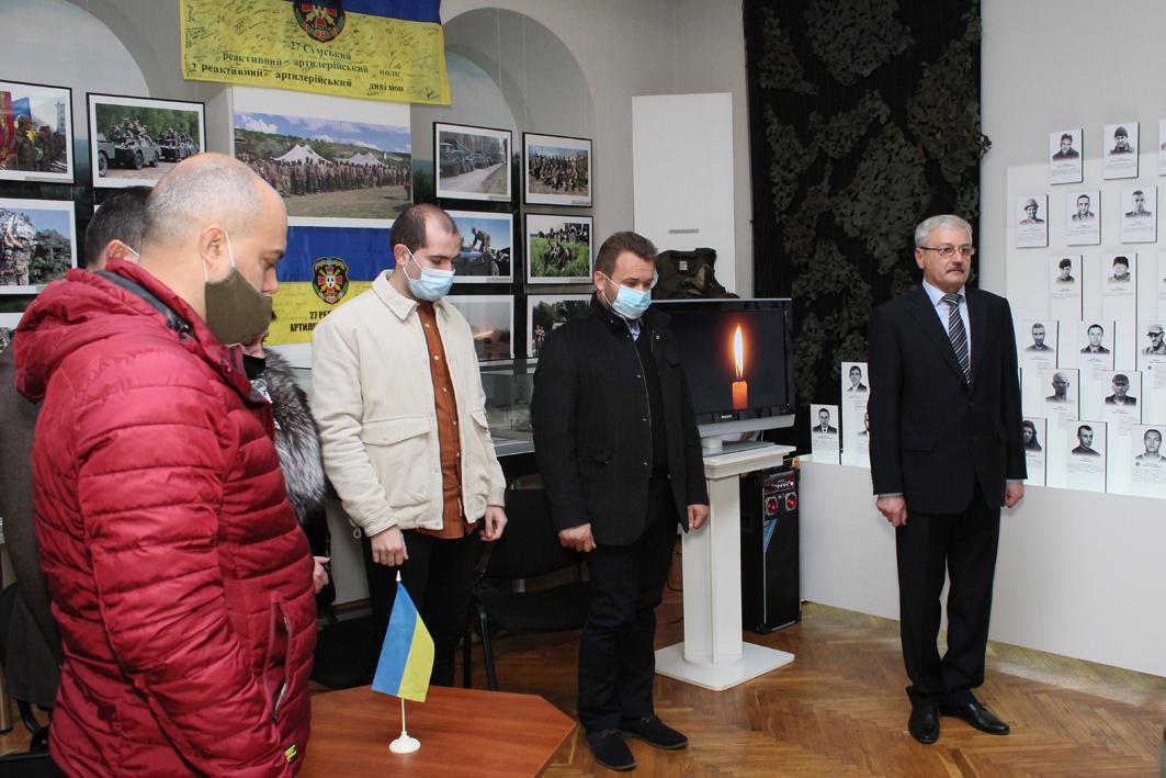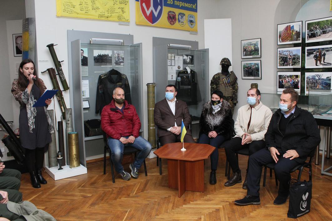 Директор музею Владислав Терентьєв розповів про історію формування експозиції, присвячену АТО/ООС, складовою якої є інсталяція «Стіна пам’яті», де увічнено 165 полеглих воїнів, біографічно пов’язаних із Сумщиною. Висловив подяку військовим та волонтерам, які передали до музею унікальні артефакти та документи про учасників АТО/ООС Сумщини.