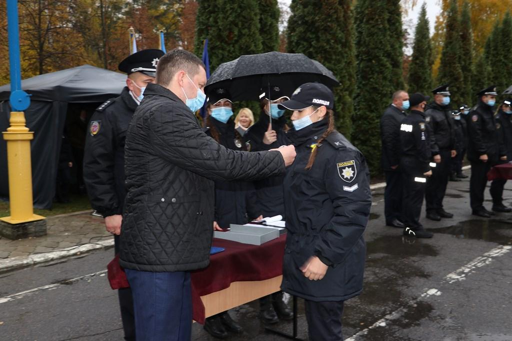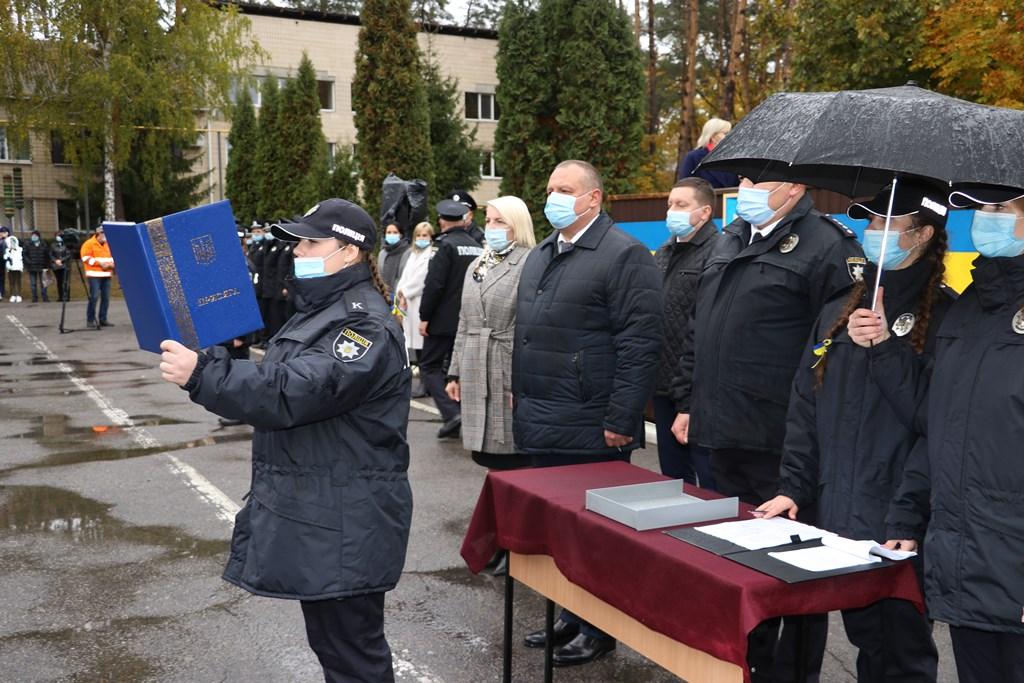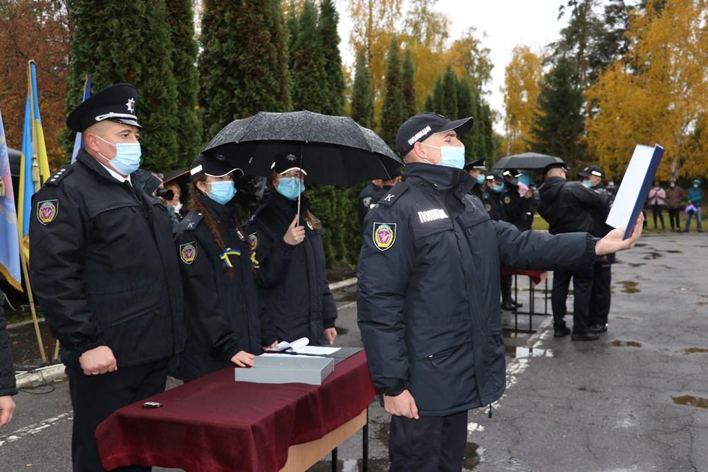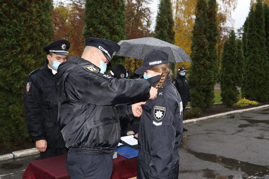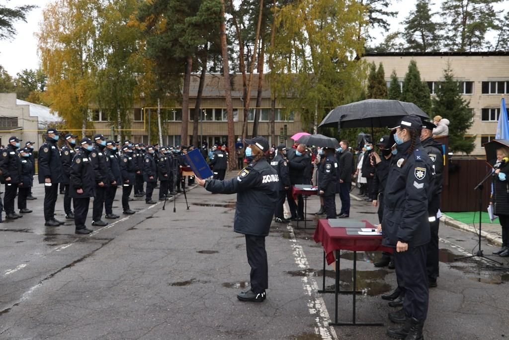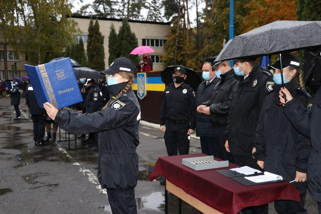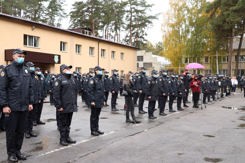 75 майбутніх фахівців підрозділів превентивної діяльності Національної поліції України присягнули вірно служити українському народу та отримали жетони поліцейських.