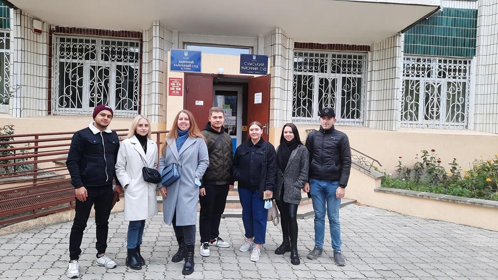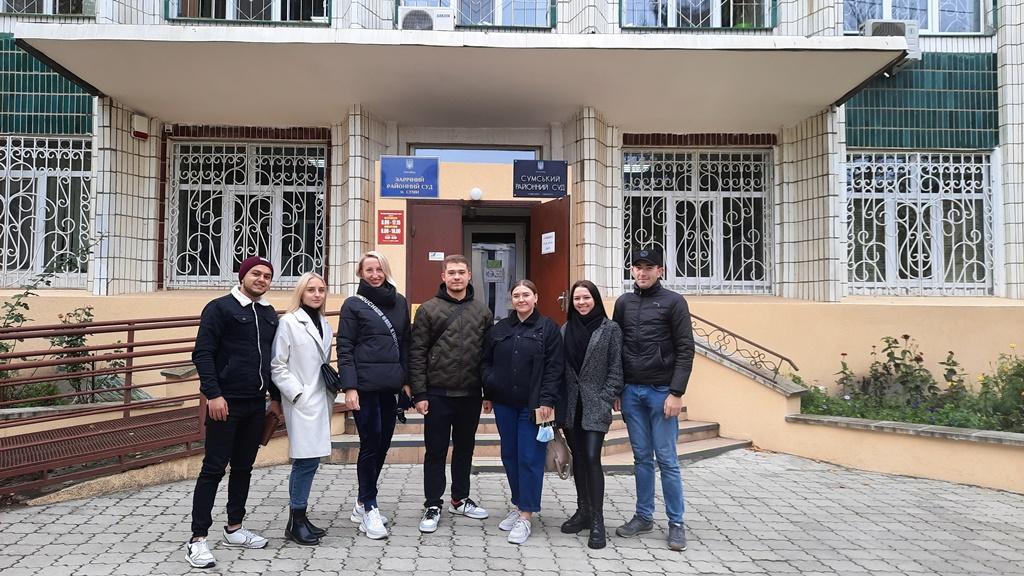 Традиційно восени студенти Сумської філії Харківського національного університету внутрішніх справ відвідують судові засідання з цивільних справ. Ініціатором таких візитів є доцент кафедри юридичних дисциплін Садикова Яна Михайлівна - викладач дисциплін «Цивільний процес» та «Складання процесуальних документів у цивільних справах». 20 жовтня 2021 року студенти 4 курсу завітали до Зарічного районного суду м. Суми.
