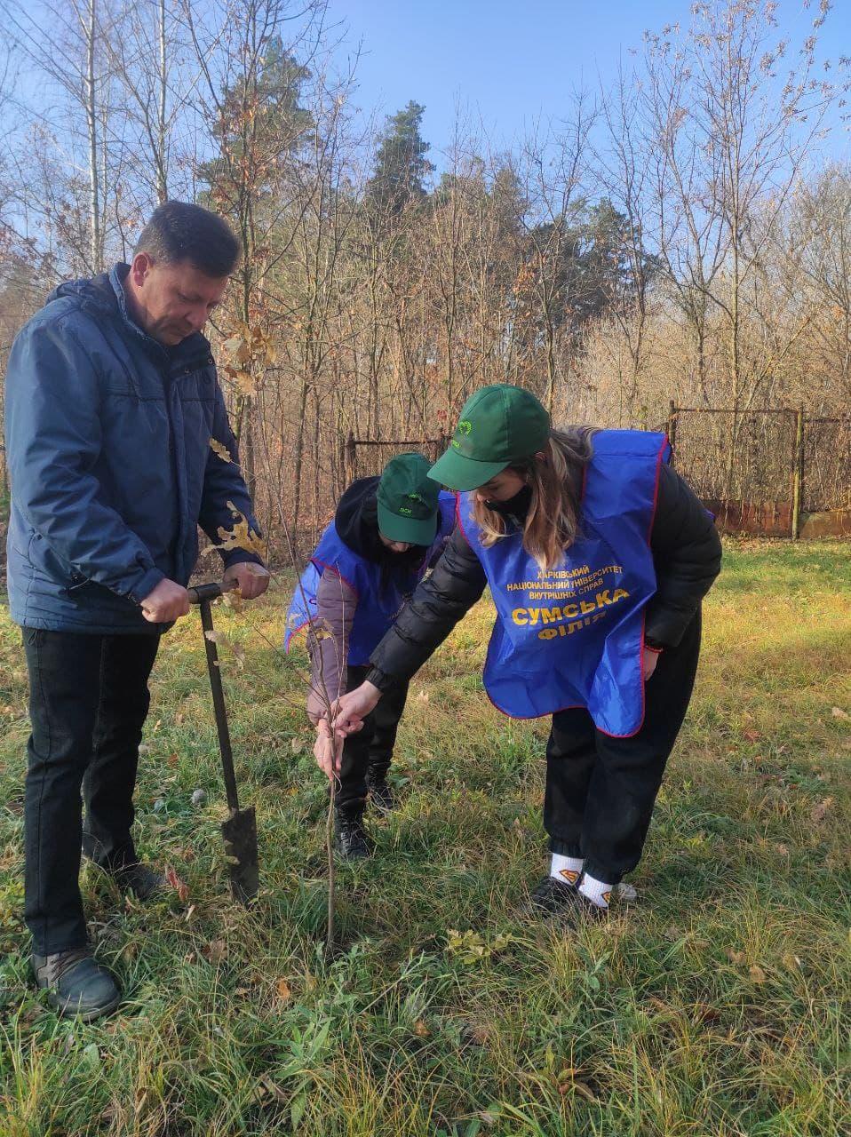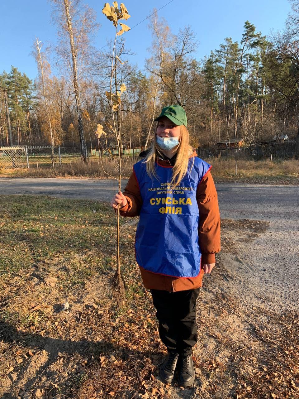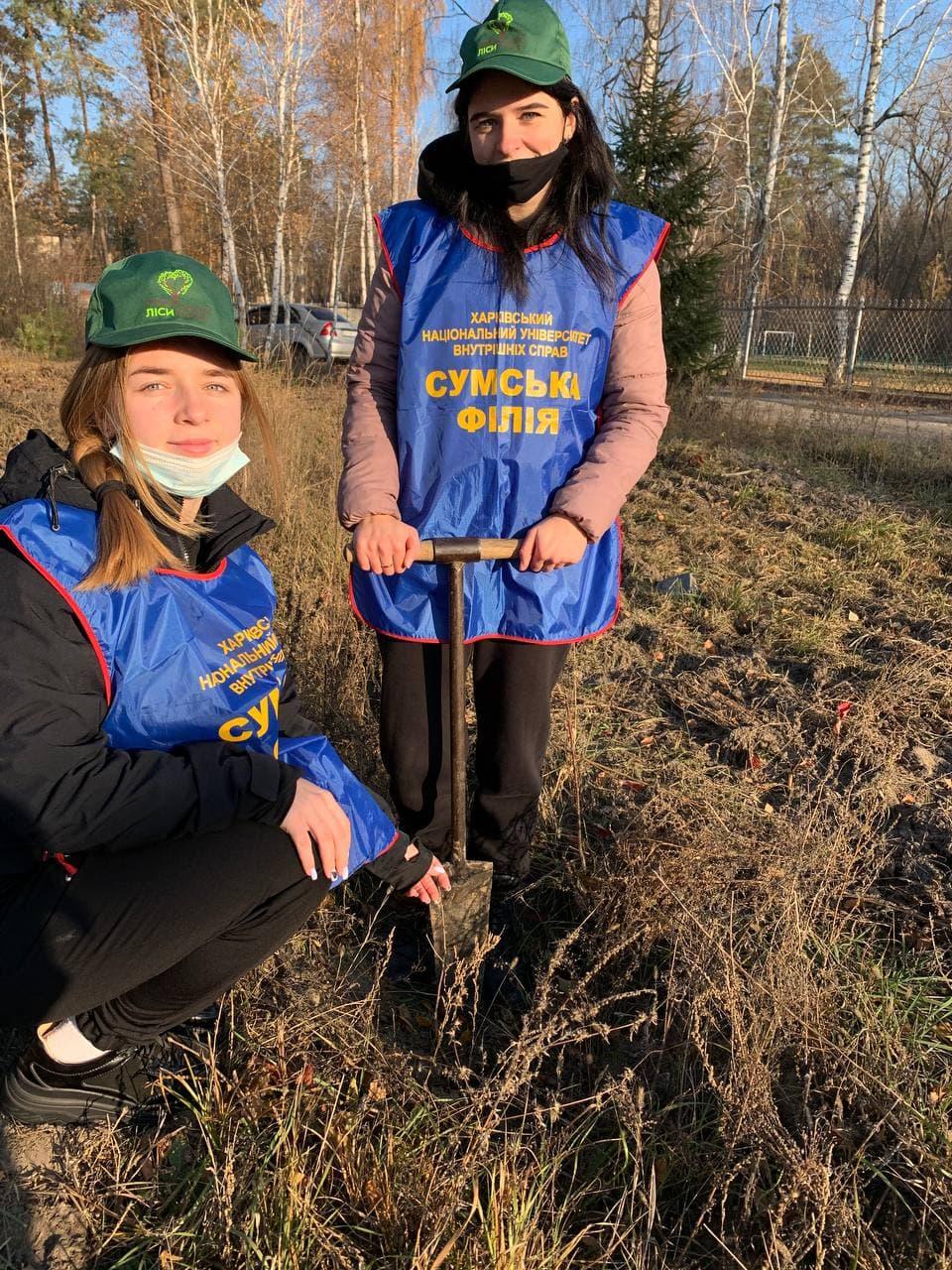 Зважаючи на актуальність екологічної проблеми сьогодення та в рамках акції «Створюємо ліси разом» курсантки створили новий дубовий ліс на місці закинутої території. А подаровані організаторами 3 садженці звичайного дуба курсантки висадили на території закладу Сумської філії ХНУВС. Захід пройшов з дотриманням карантинних обмежень.