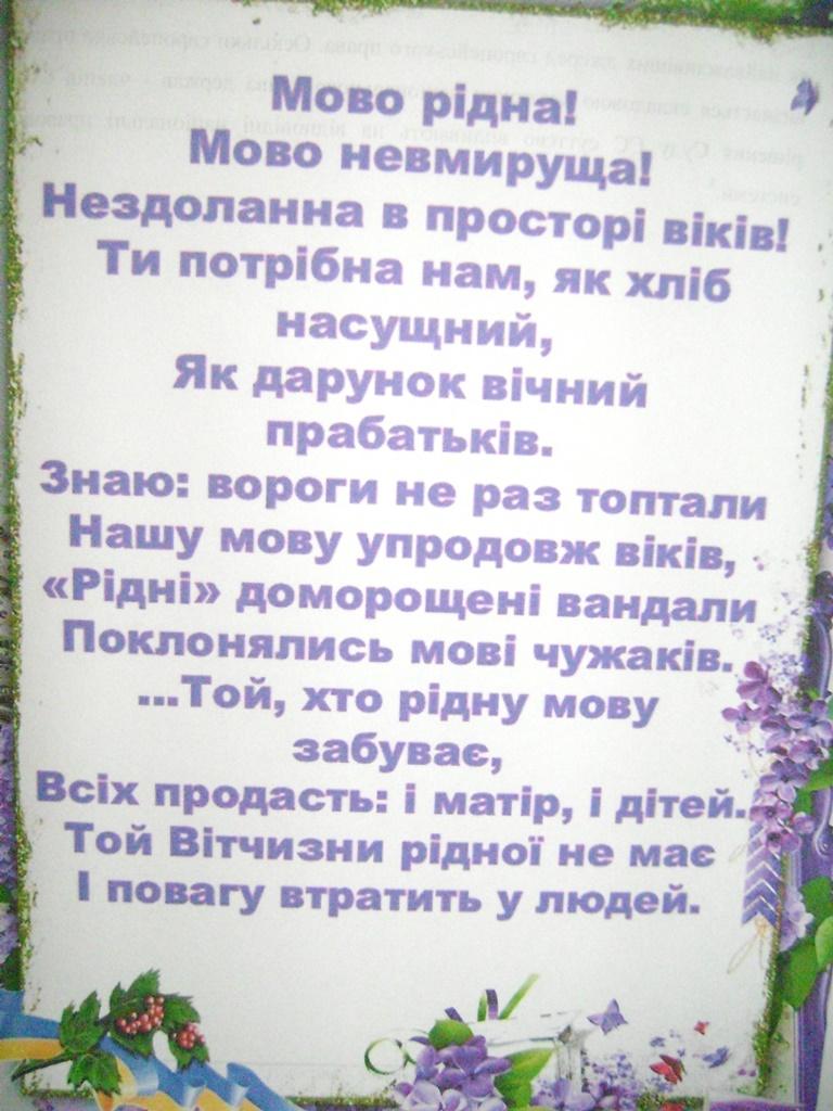 Українська мова – рідна, велична, милозвучна – вона об’єднує українців, ідентифікує нас, збагачує духовно, творить сильну непереможну націю. Пам’ятаймо, що ми живемо у мові, а вона – в нас!