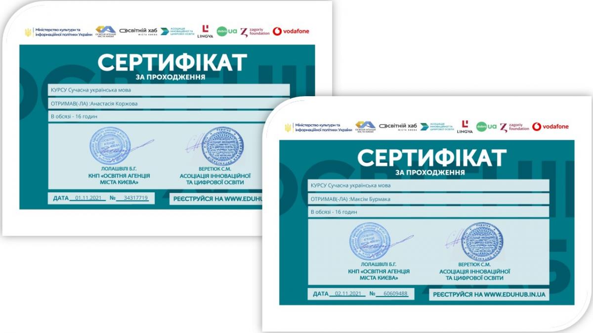 Майбутні правознавці успішно пройшли курс «Сучасна українська мова», де змогли вдосконалити навички володіння екомовою на базі нового правопису. Така перевірка власного прогресу стала важливою мотивацію для постійного лінгвовдосконалення студентів, бо відповідно до ст. 6 та ст. 9 Закону України «Про забезпечення функціонування української мови як державної» (25 квітня 2019 р. № 2704-VIII) громадяни України зобов’язані володіти державною мовою та застосовувати її під час виконання службових обов’язків.