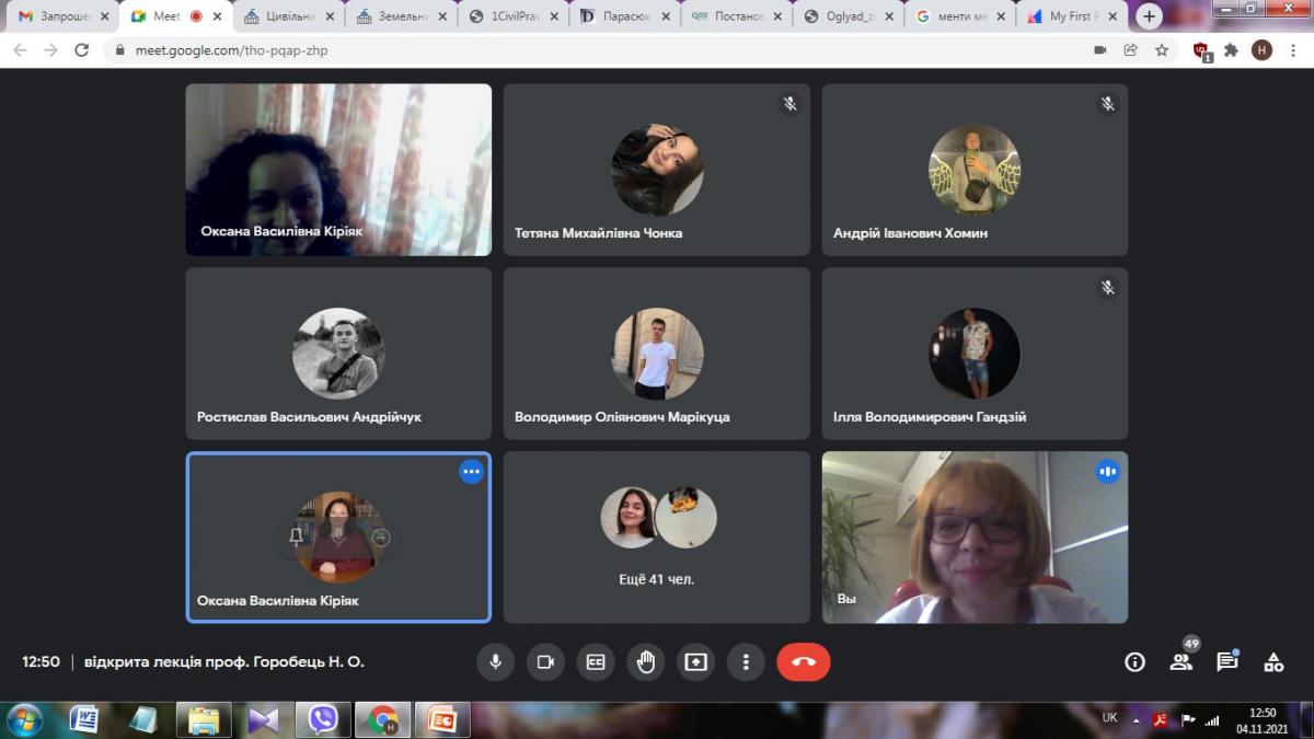 Професор кафедри юридичних дисциплін Сумської філії ХНУВС Наталія Горобець 04 листопада 2021 року прочитала лекцію «Право на чужі речі» з дисципліни «Цивільне право» для студентів 2 курсу юридичного факультету Чернівецького національного університету імені Юрія Федьковича. Науково-педагогічний склад Сумськї філії постійно працює над підвищенням професійного рівня викладання. Лекція пройшла дуже насичено, в дружній обстановці та з дискусією щодо правової природи речових прав на чужі речі в цивільному праві.