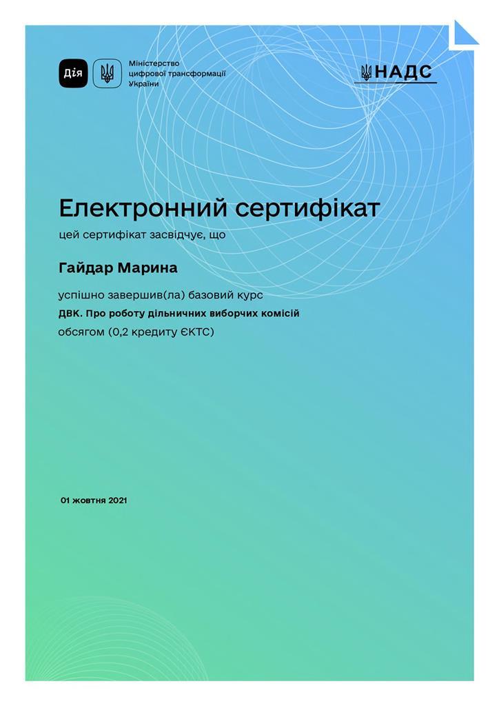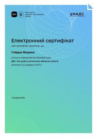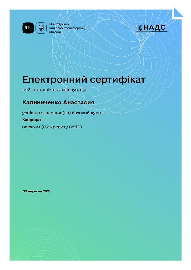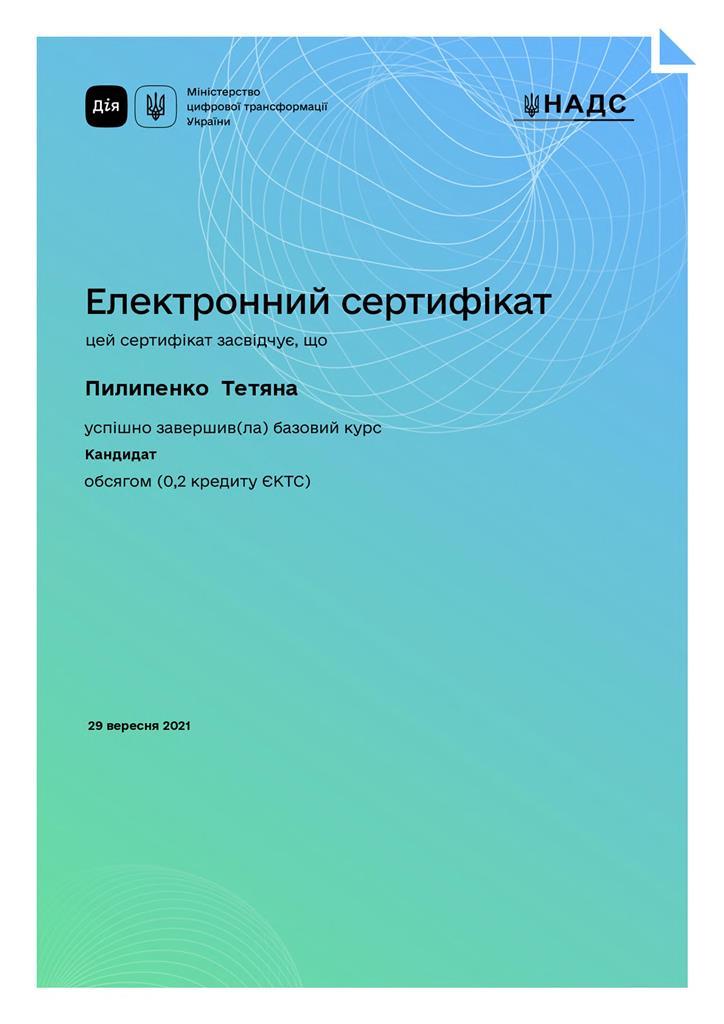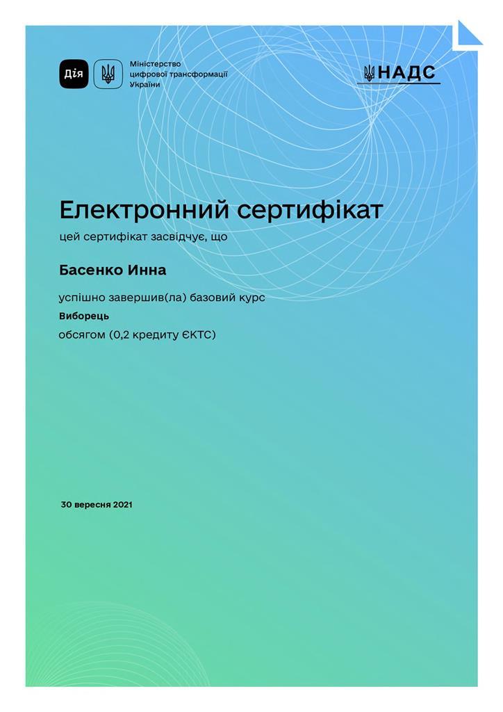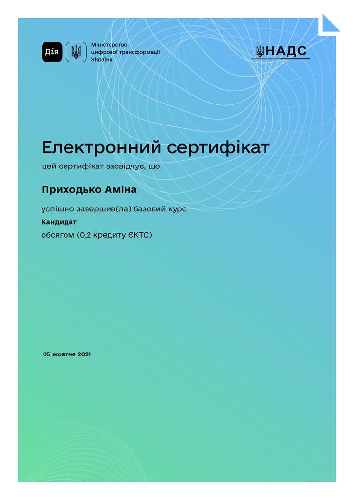 Сертифікати підтверджують про проходження базового курсу національної он-лайн платформи з цифрової грамотності «Дія. Цифрова освіта» обсягом 0,2 кредити ECTS.