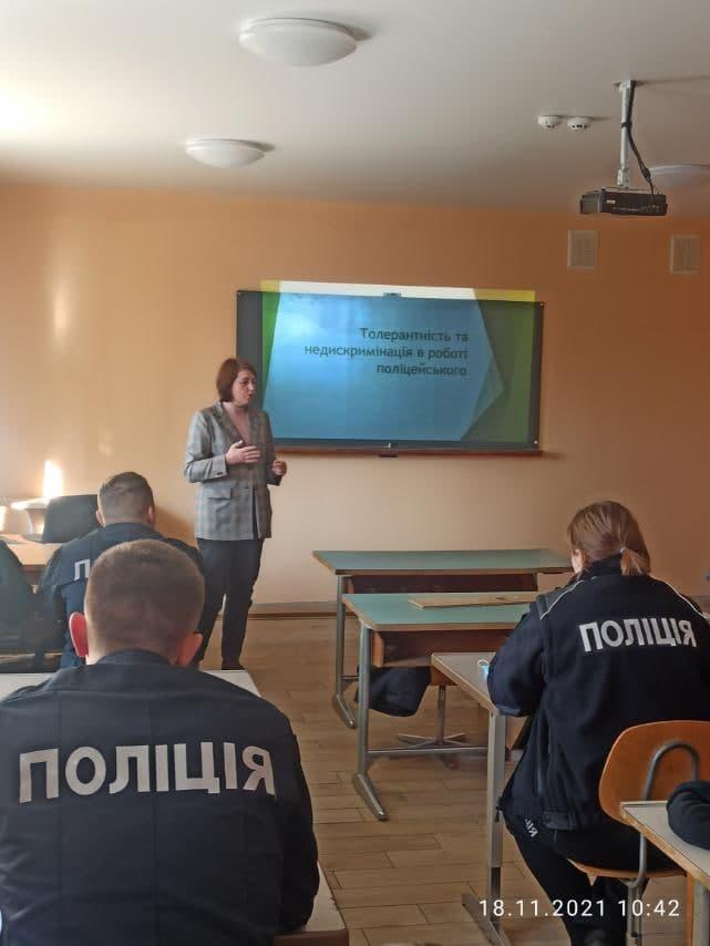 До Міжнародного дня толерантності зі слухачами Сумського центру первинної професійної підготовки Сумської філії ХНУВС викладачем Сітало Оксаною Миколаївною та психологом ВКЗ Данильченко Наталією Олександрівною 18 листопада було проведено бінарне заняття за темою «Толерантність та протидія дискримінації в роботі поліцейського».