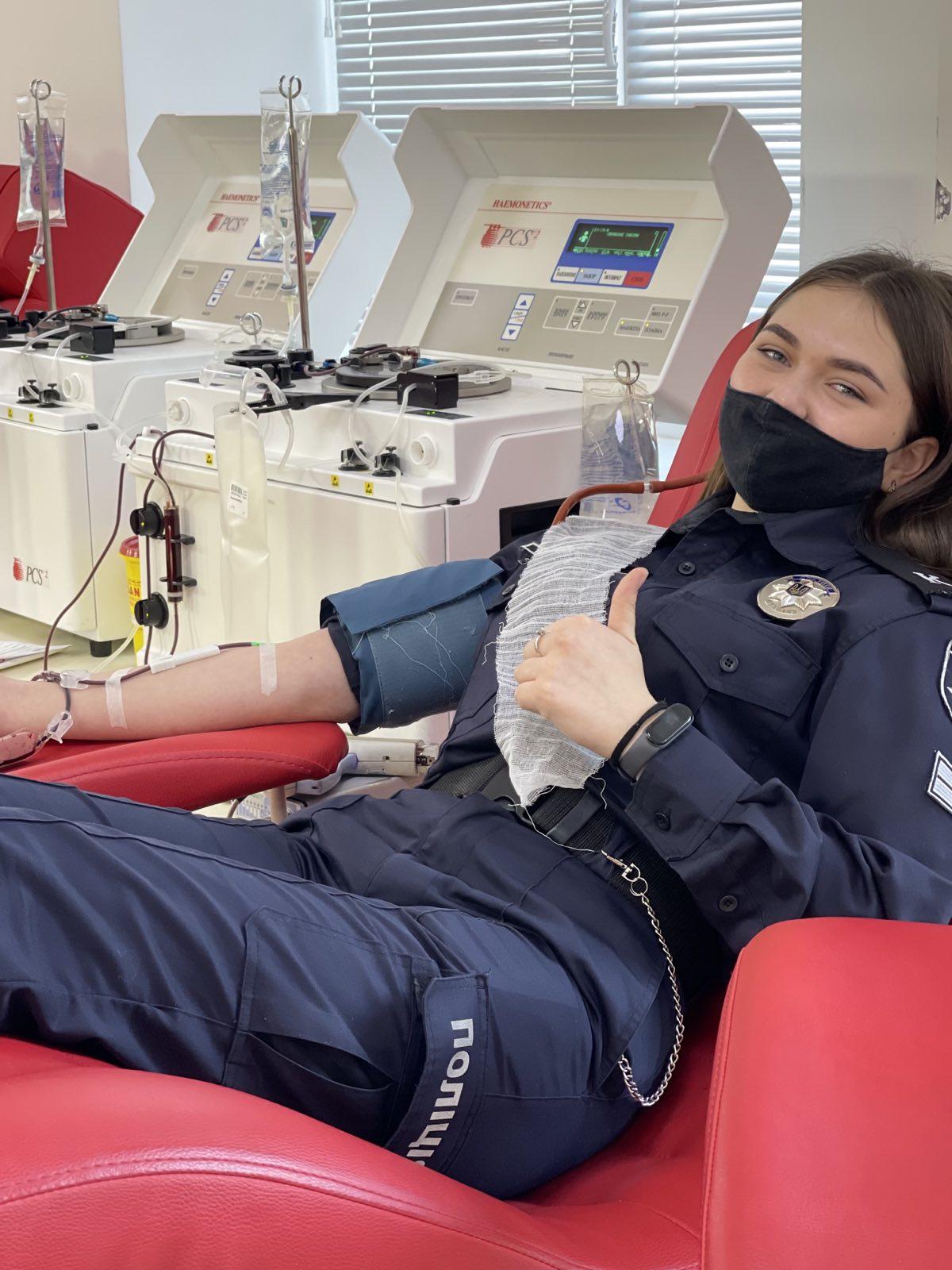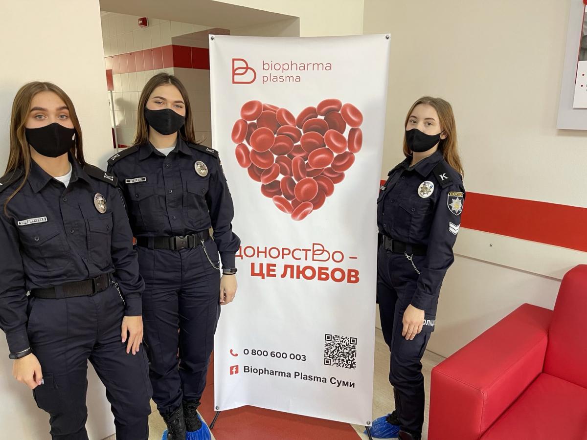 Курсантки Сумської філії Харківського національного університету внутрішніх справ: рядові поліції Грищенко Дар’я, Мельник Крістіна, Чередниченко Крістіна та Шевцова Єлизавета під керівництвом куратора 204 взводу Цвітани Баранової вкотре стали донорами для маленької пацієнтки гематологічного відділення обласної дитячої клінічної лікарні.