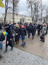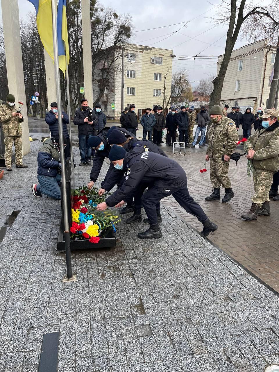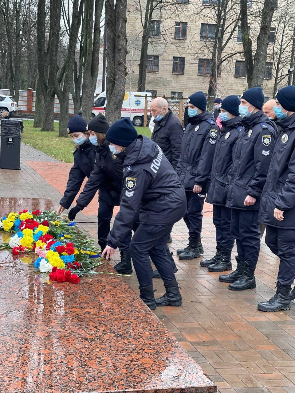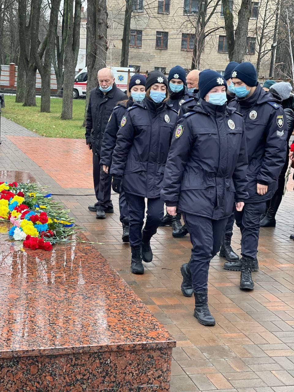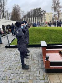 У День гідності та свободи курсанти Сумської філії Харківського національного університету внутрішніх справ під керівництвом куратора, старшого викладача кафедри юридичних дисциплін Цвітани Скорини, вшанували Героїв Небесної Сотні та всіх українських воїнів, які брали й надалі беруть участь у війні на сході країни, усіх тих, хто власним життям, своєю жертовністю демонструють щире прагнення українців жити у вільній, демократичній і суверенній державі.