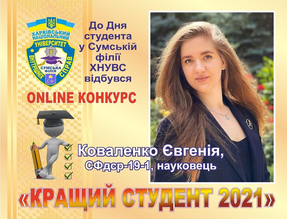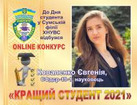 Кращий студент - науковець - Коваленко Євгенія, СФдср-19-1.