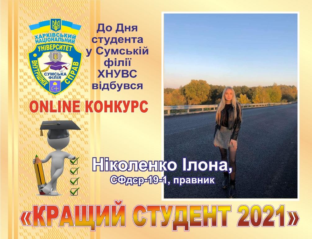 Кращий студент - правник - Ніколенко Ілона, СФдср-19-1.