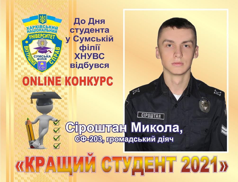 Кращий студент - громадський діяч - Сіроштан Микола, СФ-203.