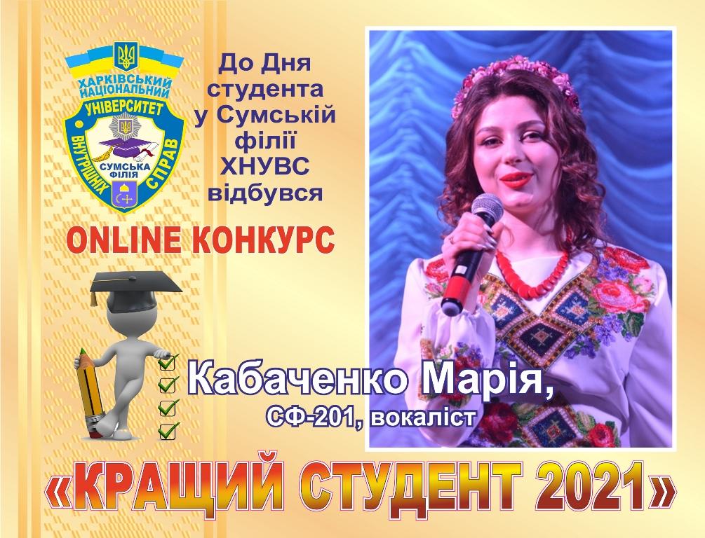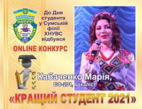 Кращий студент - вокаліст - Кабаченко Марія, СФ-201.