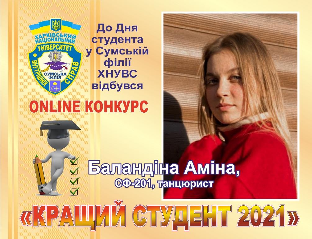 Кращий студент - танцюрист - Баландіна Аміна, СФ-201.