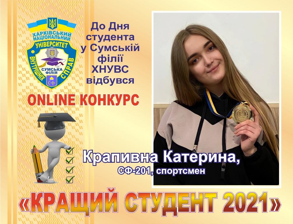 Кращий студент - спортсмен - Крапивна Катерина, СФ-201.