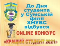 Відзначаючи цьогорічний День студента, студентсько-курсантським Парламентом Сумської філії було організовано та проведено традиційний конкурс «Кращий студент Сумської філії 2021».