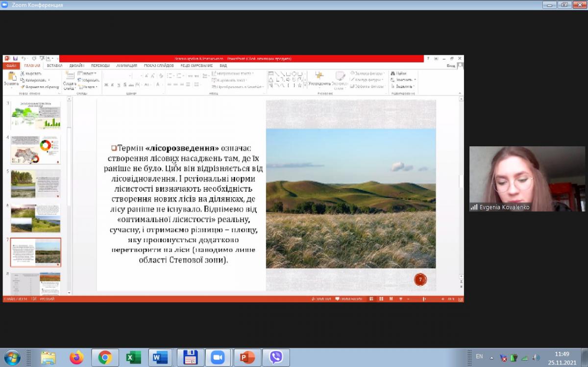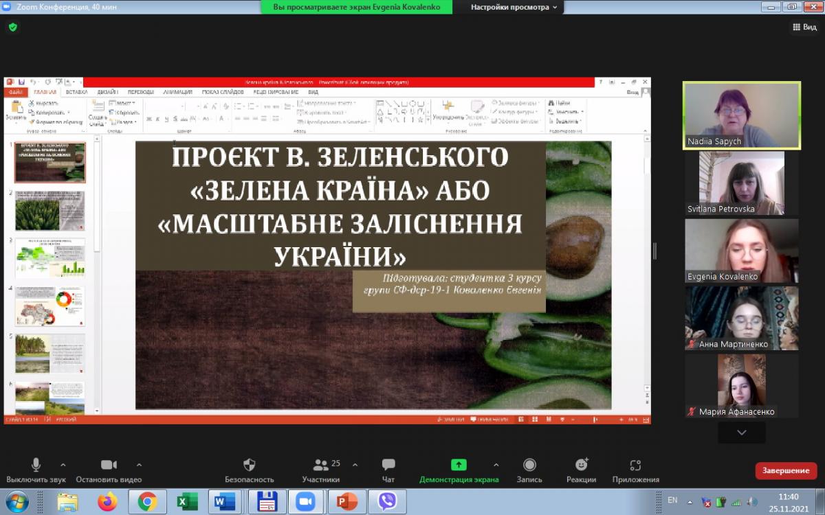 У науковому дослідженні Євгенії Коваленко на тему «Проєкт В. Зеленського «Зелена країна» або «Масштабне заліснення України» було широко висвітлено переваги та недоліки даного проєкту. Прокоментував виступ та додав цікаву інформацію Юрій Ус, який особисто приймав участь у реалізації даного проєкту у Лохвицькому районі Полтавської області.