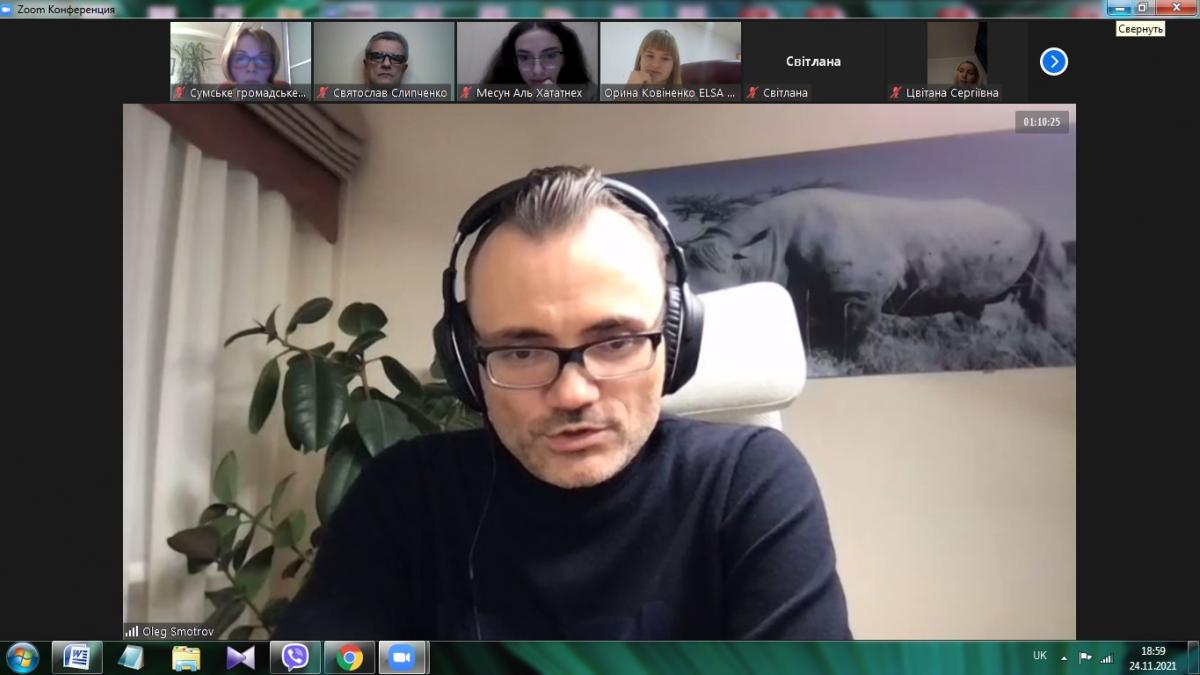 24 листопада у рамках ELSA Day відбувся вебінар на тему «Приватність в епоху цифровізації», спікерами якого виступили д-р. юрид. наук, професор Святослав Сліпченко (ХНУВС) та канд.юрид.наук, CEO «Jusnote», засновник «Дом юриста», адвокат Олег Смотров. Запрошеними гостями були канд.юрид.наук, доцент Наталія Горобец та канд.юрид.наук, доцент Яна Садикова.