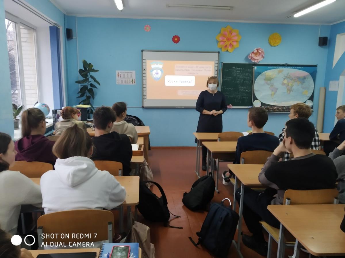 Зустріч відбулася у дружній, робочій атмосфері. Учні активно приймали участь у обговоренні проблем насильства. Пропонували своє бачення механізмів вирішення ситуації. У підсумку була вироблена спільна позиція, що насильство не можна терпіти в жодних його виявах. Потрібно звертатися за допомогою як до компетентних органів, так і до небайдужих громадян. Головне не залишатися з проблемою один на один.