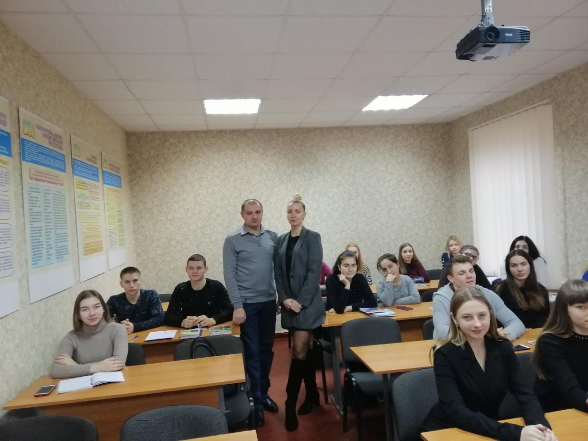 Під керівництвом викладача кафедри юридичних дисциплін Сумської філії Харківського національного університету внутрішніх справ Цвітани Баранової проведено бінарне заняття для студентів 3-го курсу денної форми навчання з дисципліни кримінальне право на тему: «Злочини проти власності» за участю заступника керівника Роменської місцевої прокуратури Юрія Вікторовича Лук’яненка.