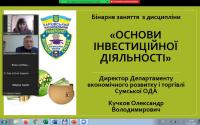 Доцентом кафедри соціально-економічних дисциплін Сумської філії Харківського національного університету внутрішніх справ Світланою Петровською в рамках вивчення дисципліни «Основи інвестиційної діяльності» для студентів четвертого курсу денної форми навчання спеціальності 081 Право було організовано заняття за участю директора Департаменту економічного розвитку і торгівлі Сумської обласної державної адміністрації Олександра Володимировича Кучкова.