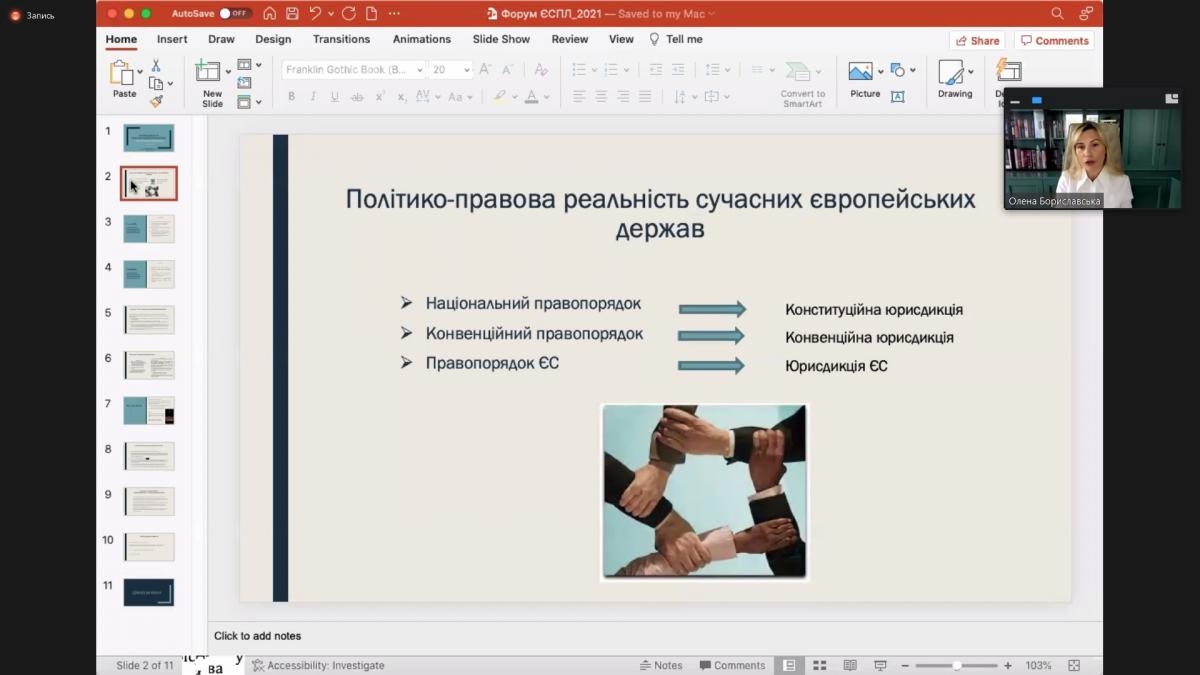 Щорічний міжнародний форум із практики Європейського суду з прав людини - це платформа для обговорення важливих питань щодо застосування практики ЄСПЛ та її впливу на Україну для усіх гілок державної влади в Україні, суддів ЄСПЛ, правників, науковців, неурядових організацій та експертів у галузі захисту прав людини, а для науково-педагогічних працівників та науковців - і підвищення кваліфікації, і обмін думками, і можливість бути в курсі трендів юридичної практики.