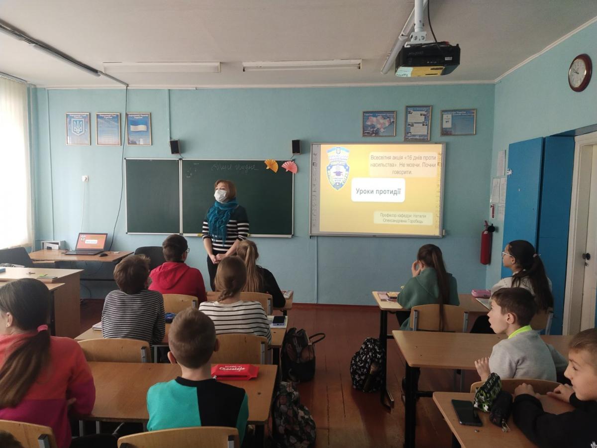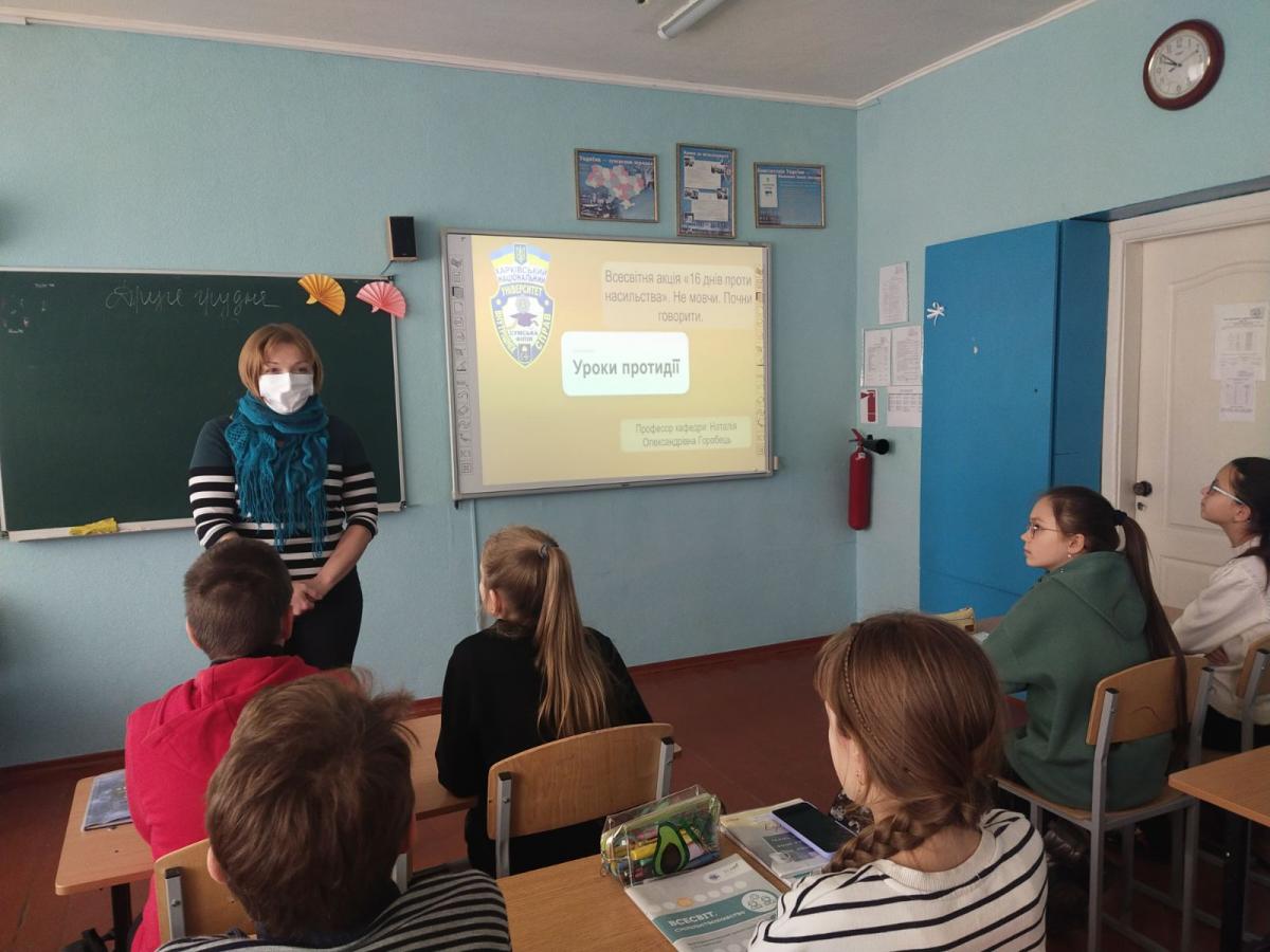 02 грудня 2021 року професор кафедри юридичних дисциплін Сумської філії ХНУВС Наталія Горобець зустрілася з учнями 5-а класу КУ ЗОШ І-ІІІ ст. №23 м. Суми на тему "Протидія насильству. Не мовчи. Почни говорити".