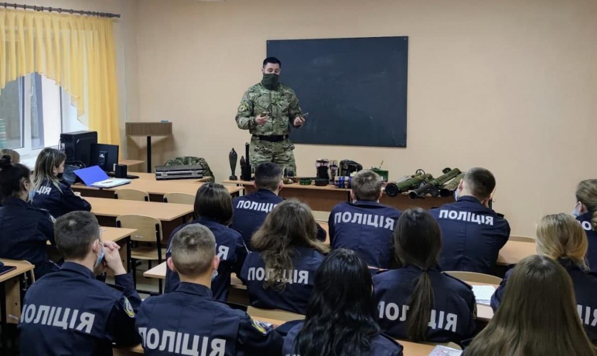 У рамках теми практичного заняття, присвяченого питанням вибухобезпеки, практичний працівник розповів курсантам основні принципи і правила поводження з вибуховими пристроями, охарактеризував їх властивості, продемонстрував демонстраційні моделі штатних і муляжі саморобних вибухових пристроїв.