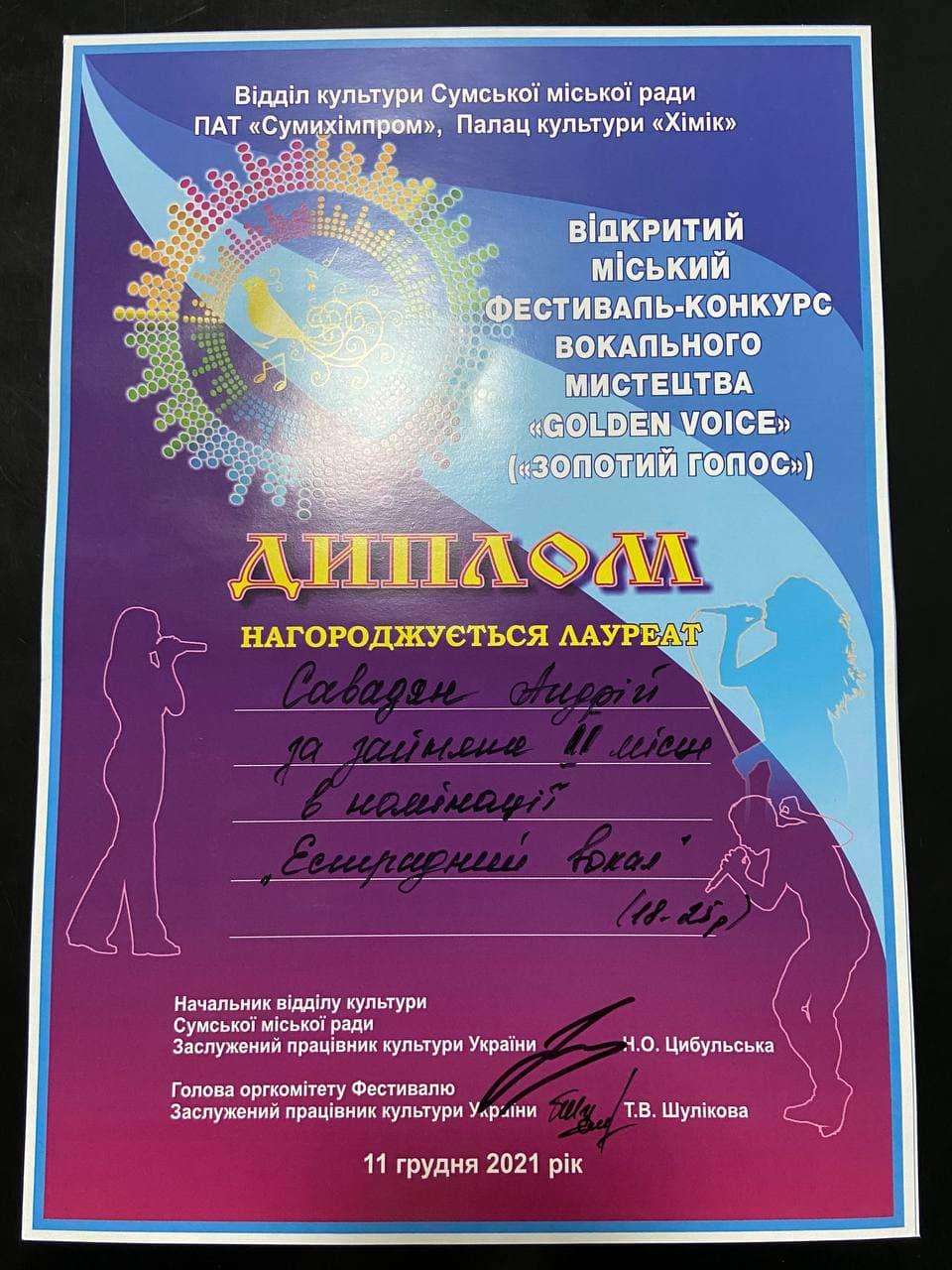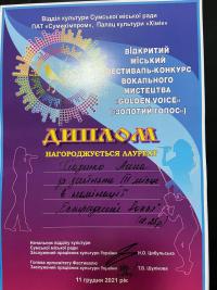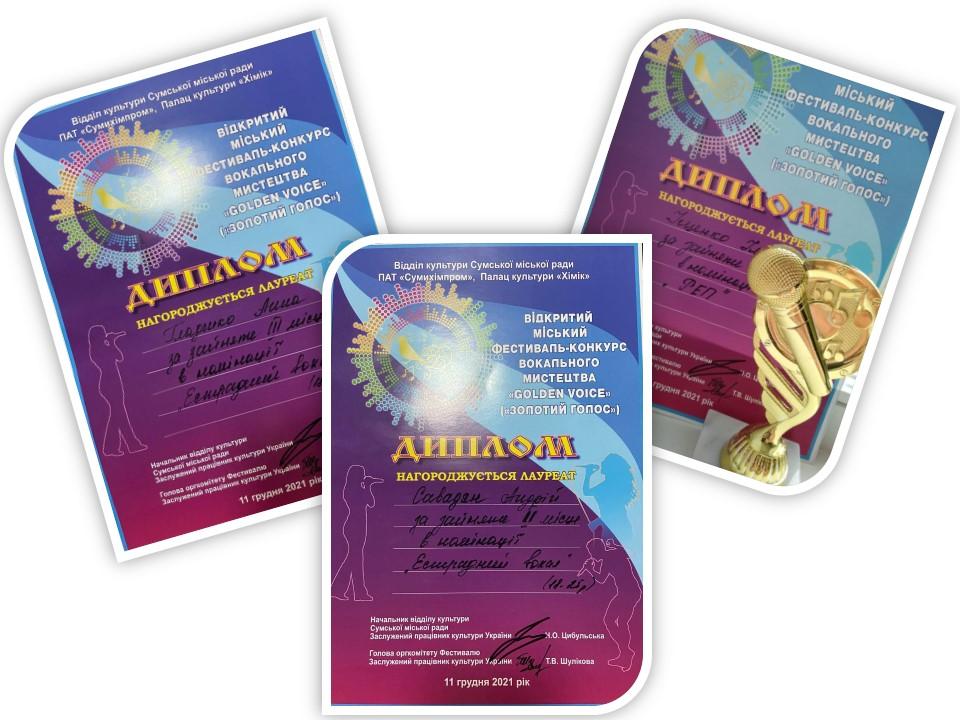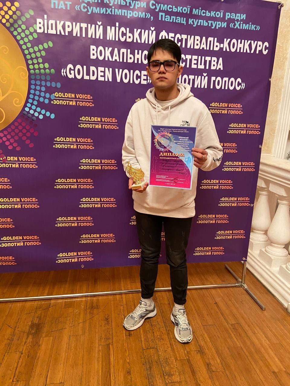 11 грудня курсанти Сумської філії Харківського національного університету внутрішніх справ взяли участь у відкритому міському фестивалі-конкурсі вокального мистецтва «Golden voice». Даний конкурс проводився у форматі онлайн та офлайн відділом культури Сумської міської ради у Палаці культури «Хімік» ПАТ «Сумихімпром». Серед багатьох його учасників наші курсанти здобули перемогу у своїх категоріях (14-18 років, 18-25 років).