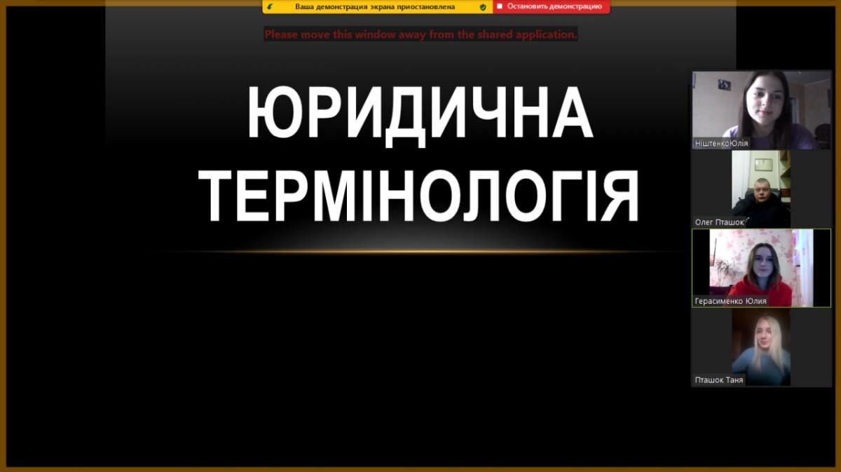 У грудні відбулося засідання юридикотермінологічної секції студентсько-курсантського гуртка «Veritas» кафедри гуманітарних дисциплін Сумської філії ХНУВС під керівництвом завідувача кафедри Валентини ВАСИЛЕНКО, де були виголошені доповіді гуртківців, що розкривали питання когнітивних аспектів юридичних термінів, сучасних номенклатур елементів лінгвоюридичного коду, термінологічного забезпечення професійної діяльності правника, специфіки термінотворення специфічно фахових найменувань, ролі класичних мов у формуванні юридичної термінології, а також когнітивних аспектів вивчення деяких правничих термінів.