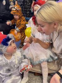 І вже 17 грудня представники Сумської філії: провідний фахівець Ганна Мітітєл, куратор взводу СФ-204 Цвітана Баранова, голова студентсько - курсантського парламенту Марина Гайдар, її заступниця Аль Хататнех Месун Моаед та курсанти 2 курсу Стародубець Дмитро і Конончук Дмитро не порушуючи добрих традицій, від імені великого колективу філії привітали маленьких дітлахів зі святом.