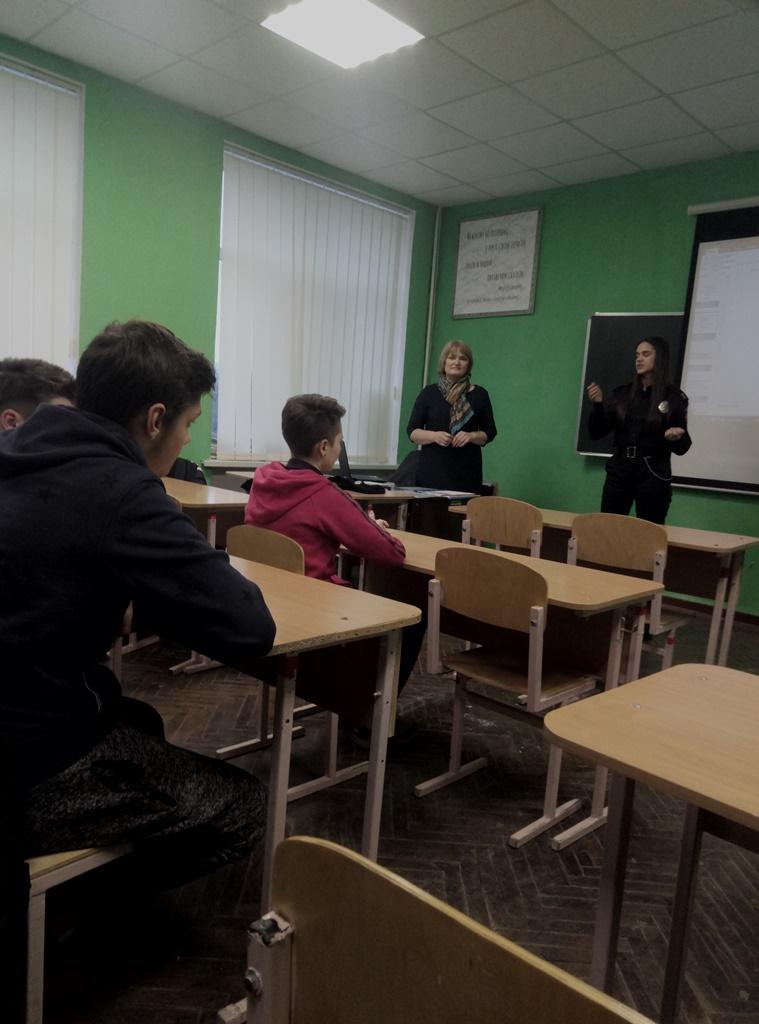 Доцент кафедри соціально-економічних дисциплін Сумської філії Харківського національного університету внутрішніх справ Світлана Виганяйло і курсанти першого курсу Вікторія Шендрик та Володимир Морозов відвідали КУ Сумську загальноосвітню школу І-ІІІ ступенів № 3 ім. генерал-лейтенанта А.Морозова спортивного профілю з метою проведення профорієнтаційної роботи з учнями 11 класу.