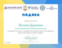 Доцент кафедри юридичних дисциплін Сумської філії Харківського національного університету внутрішніх справ Наталія Дуравкіна взяла участь в заході в якості спікера та модератора.