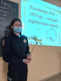 «Найцінніше, що є у людини – це її життя. А якщо його вартість – п’ять колосків, які притискає до грудей голодна дитина…». Такими словами куратор 101 взводу, доцент кафедри гуманітарних дисциплін Сумської філії Харківського національного університету внутрішніх справ Тетяна Геращенко розпочала бесіду з курсантами на тему «Голодомор на Сумщині».