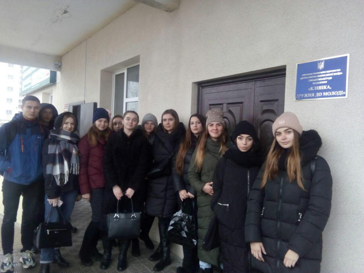 У рамках лекторію «Молодь за здоровий спосіб життя» та з метою проведення акції «16 днів без насильства» для студентів першого курсу Сумської філії Харківського національного університету внутрішніх справ було організовано зустріч з провідними фахівцями «Клініки, дружньої до молоді» Сумської міської ради.