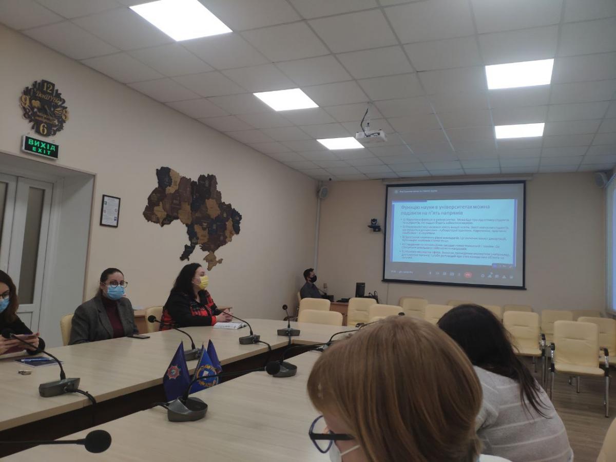 27 січня 2022 року відбувся міжкафедральний семінар за темою «Світлофор політик ЄС: гендер, міграція та цифровізація». Метою такого семінару стало обговорення таких важливих складових освітнього процесу як гендерне інтегрування, впровадження гендерно-орієнтованих практик в освітні дисципліни, освітні програми та дисципліни в світлі сучасних тенденцій, а саме необхідність наближення навчальних курсів до потреб громад, врахування євроінтеграційного курсу України при визначенні змісту дисциплін, необхідність створення центрів наукових досліджень у закладах вищої освіти, у тому числі, що перебувають в системі управління МВС України.