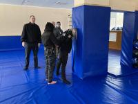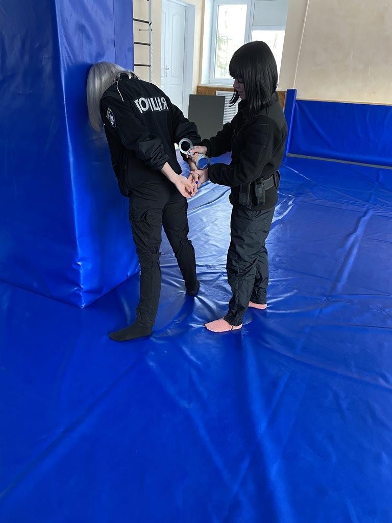 (м. Суми) Сумської філії ХНУВС майором поліції Миколою Підоймою та старшим лейтенантом поліції Романом Проценком за участю інспектора патрульної поліції роти ТОР УПП в Сумській області лейтенанта поліції Олени Гудим для слухачів навчальної групи 09/21 (спеціалізація «Спеціальна поліція», кваліфікація «Поліцейський підрозділів забезпечення») проведені бінарні заняття з навчальної дисципліни «Фізична підготовка (тактика самозахисту)» на тему: «Захист від нанесення ударів руками та ногами (блоки, больові прийоми)».
