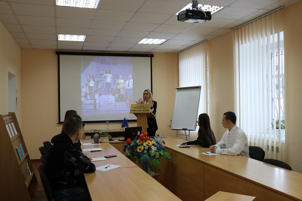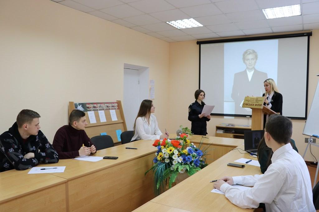 Старша викладачка кафедри юридичних дисциплін, відповідальна особа з гендерних питань у Сумській філії Харківського національного університету внутрішніх справ Цвітана БАРАНОВА провела інтерактивну дискусію з курсантами та студентами на тему «Жінка має силу».