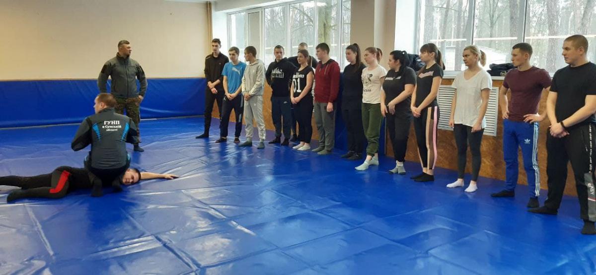 Максим Юрій ознайомив слухачів із порядком проведення інструктажу безпосередньо в підрозділах ГУНП в Сумській області під час занять у системі службової підготовки поліцейських. Слухачам було продемонстровано способи захисту від ударів, затримання правопорушника при підході спереду та збоку. Отримані знання допоможуть бути готовим до виконання завдань поліції, особливо в екстремальних ситуаціях.