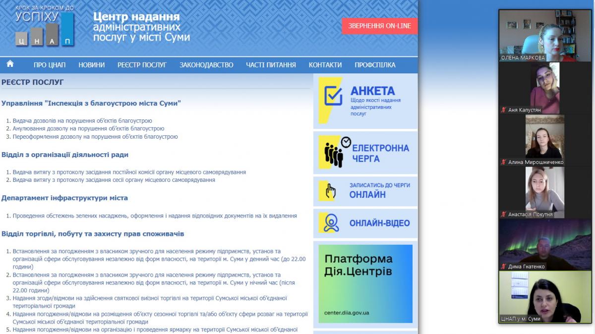 У рамках вивчення навчальної дисципліни «Правове регулювання адміністративних послуг» доцентом кафедри юридичних дисциплін Сумської філії ХНУВС Марковою Оленою Олегівною спільно із Центром надання адміністративних послуг в м. Суми розпочато цикл бінарних занять.