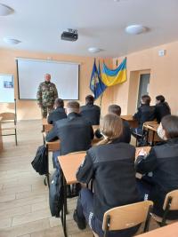 До курсантів завітали учасники війни в Афганістані (1979-1989): бойовий офіцер, полковник, артилерист, кавалер ордену «Червона зірка» Юрій Ситниченко та бойовий офіцер, полковник, танкіст Григорій Гончаренко. Гості розповіли курсантам про події Афганської війни, про мужність і відповідальність бійців, проявлені в ході бойових операцій, про ціну справжньої чоловічої дружби, про воєнні будні і жахливі події тієї далекої війни. Тоді війна безжально перекреслила тисячі молодих життів і юнакам довелось складати екзамен на зрілість, мужність і гідність.