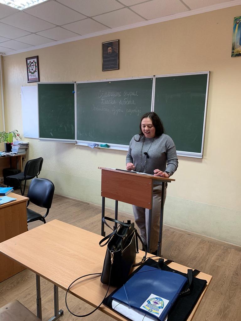 Доцентом кафедри юридичних дисциплін Сумської філії Харківського національного університету внутрішніх справ Наталією Дуравкіною проведено лекцію-бесіду для учнів 11 ЛГ класу Сумської спеціалізованої школи імені О. Бутка на тему «Трудові права неповнолітніх».