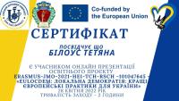 28 квітня 2022 року доцентка кафедри гуманітарних дисциплін Сумської філії Харківського національного університету внутрішніх справ Тетяна Білоус прийняла участь у онлайн презентації освітнього проєкту «ЛОКАЛЬНА ДЕМОКРАТІЯ: КРАЩІ ЄВРОПЕЙСЬКІ ПРАКТИКИ ДЛЯ УКРАЇНИ», що був організований та проведений командою викладачів Сумського державного університету.