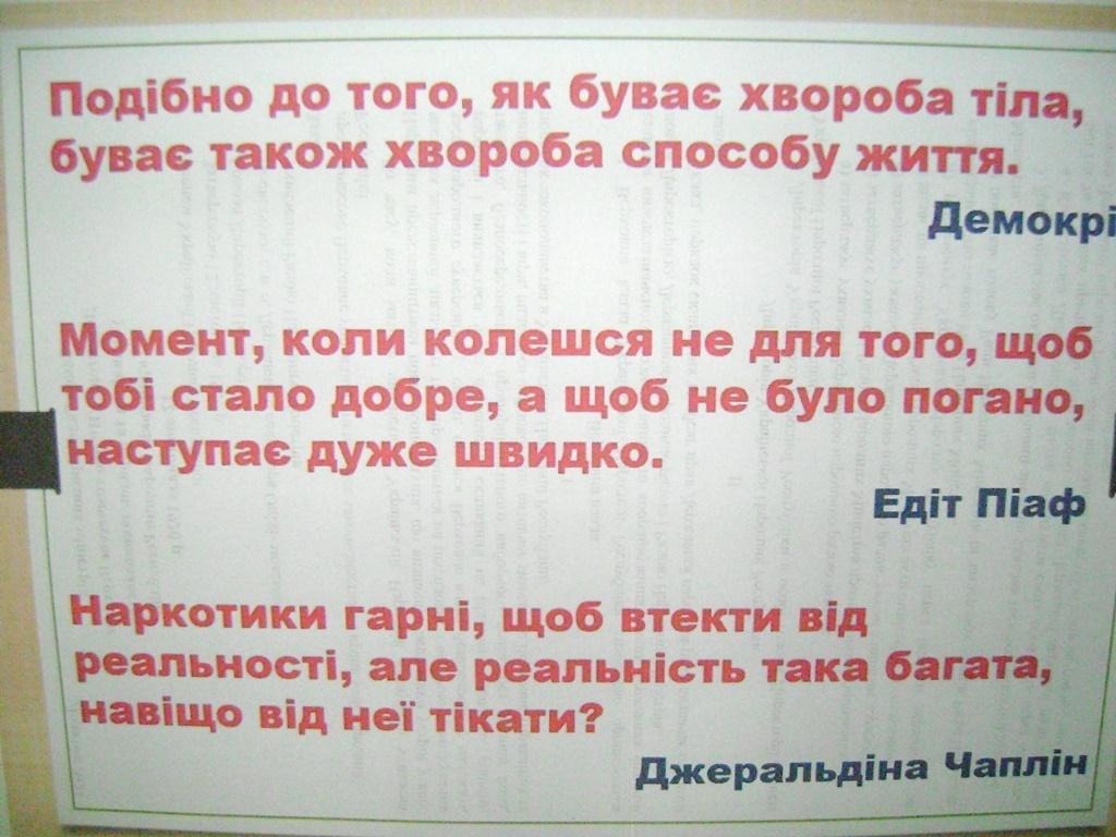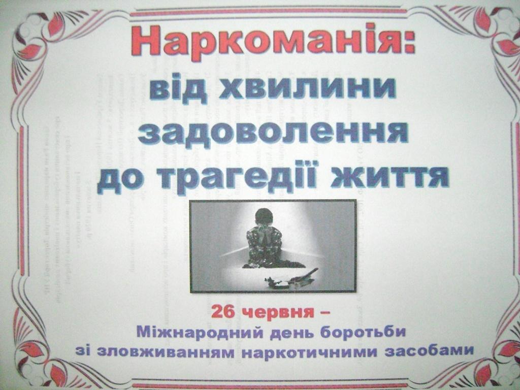 Закликаємо молодь подумати над тим, що вас чекає попереду, якщо ви будете вживати наркотики. Підступність їх у тому, що розплата неминуча.