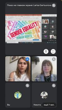 У межах проведення дистанційного освітнього процесу Сумської філії ХНУВС старшим викладачем кафедри гуманітарних дисциплін Ларисою Гарцуновою було організовано бінарне заняття з дисципліни “Іноземна мова (англійська)” для здобувачів вищої освіти 1 курсу спеціальності Правоохоронна діяльність на тему "What is gender equalty? " ("Поняття гендерної рівності" ) за участі соціального педагога Сумської «Клініки дружньої до молоді» Анни Крамар.