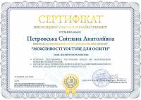 За результатами складання тестів Петровська С. отримала сертифікати.