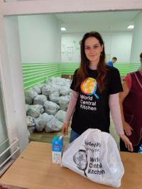 Перший гуманітарний штаб - гордість Сумщини. Його команда, яка співпрацює з Міжнародною організацією «World Central Kitchen”, з 24 квітня щоденно видає продуктові набори. За 2,5 місяці волонтерами штабу було сформовано близько 80 000 продуктових наборів і розподілено між жителями міста Суми та області.