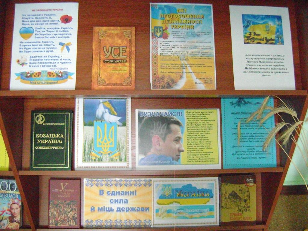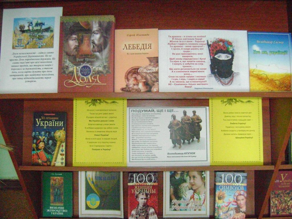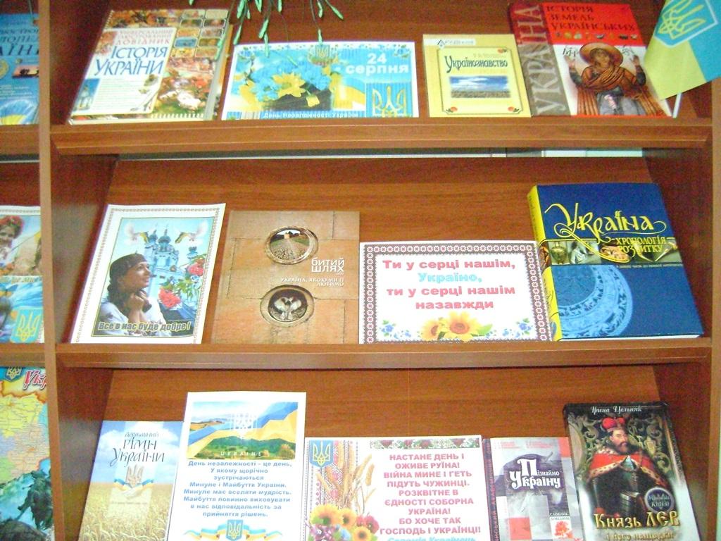 З нагоди свята та з метою патріотичного виховання бібліотека підготувала книжково-ілюстративну виставку «Ти у серці нашім, Україно, ти у серці нашім назавжди».