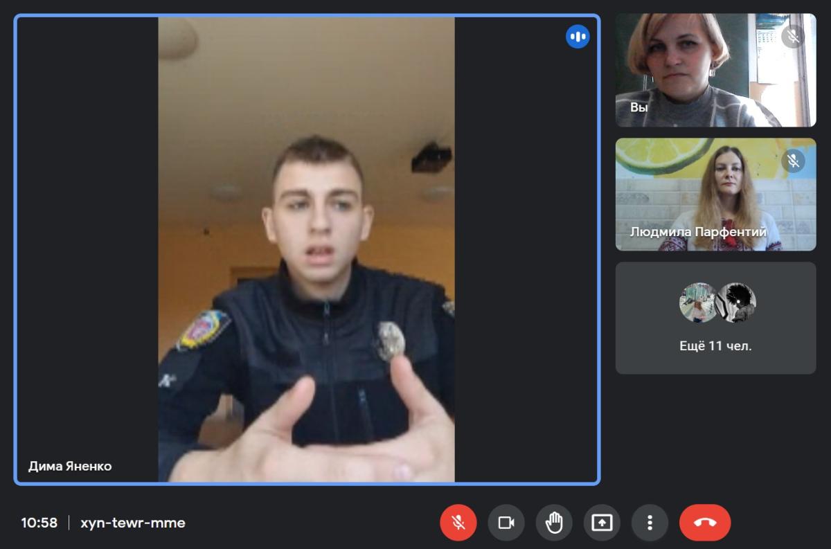 З нагоди Дня юриста доцент кафедри соціально-економічних дисциплін Сумської філії ХНУВС Парфентій Людмила Анатоліївна та курсант 2 курсу Яненко Дмитро в режимі відеоконференції зустрілися з учнями 11 класу Сумської загальноосвітньої школи І-ІІІ ступенів №4 імені Героя України Олександра Аніщенка та провели профорієнтаційну бесіду про перспективи юридичної освіти в Україні. Школярі прослухали інформацію про можливості працевлаштування осіб з юридичною освітою та особливості роботи нотаріуса, прокурора, судді, адвоката, юрисконсульта і поліцейського. Було акцентовано також увагу на особистісних і професійних навичках, якими повинні володіти юристи.