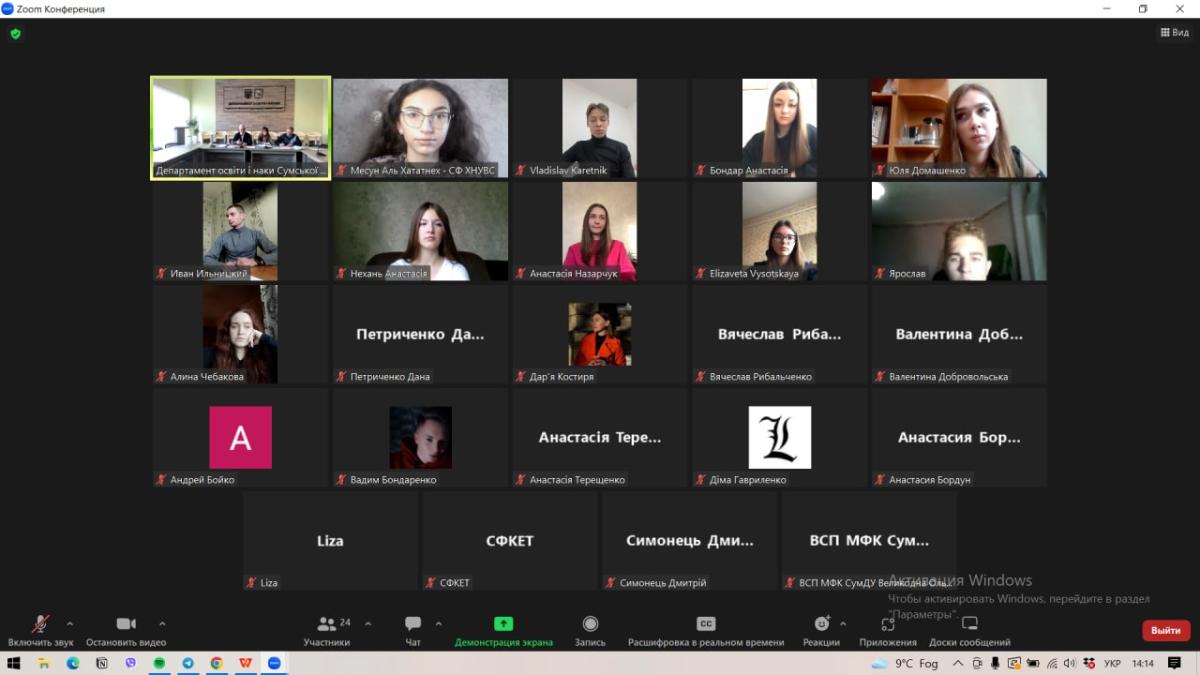 09 листопада у Департаменті освіти і науки Сумської обласної державної адміністрації в режимі он-лайн відбулася сесія Студентської ради за участі молодіжних лідерів закладів освіти Сумщини.