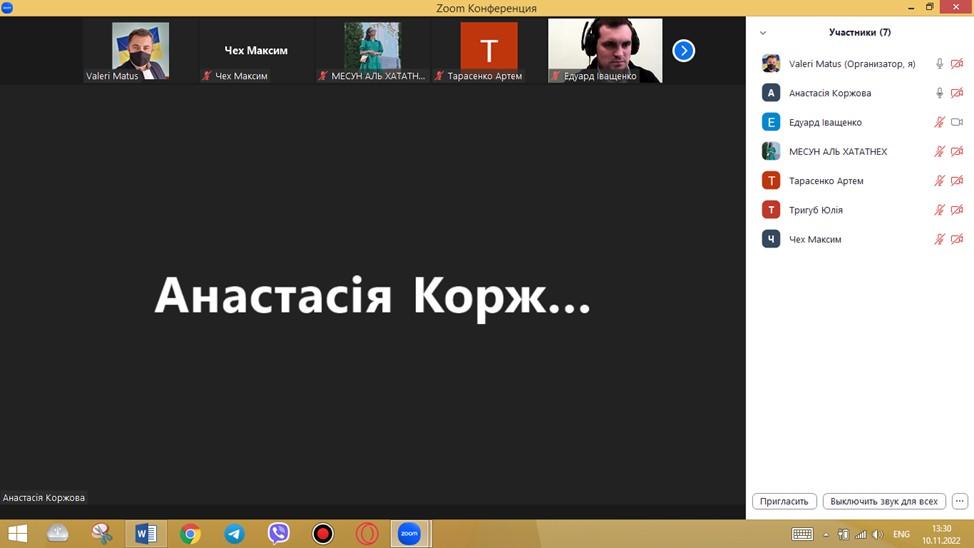 10 листопада 2022 року для студентів 3 курсу спеціальності 081 «Право» викладачем кафедри юридичних дисциплін Сумської філії Харківського національного університету внутрішніх справ В. Матусом разом із начальником відділу аналітичної роботи та судової статистики Сумського апеляційного суду Е. Іващенком було проведено бінарне семінарське заняття у форматі онлайн з теми «Докази та доказування».